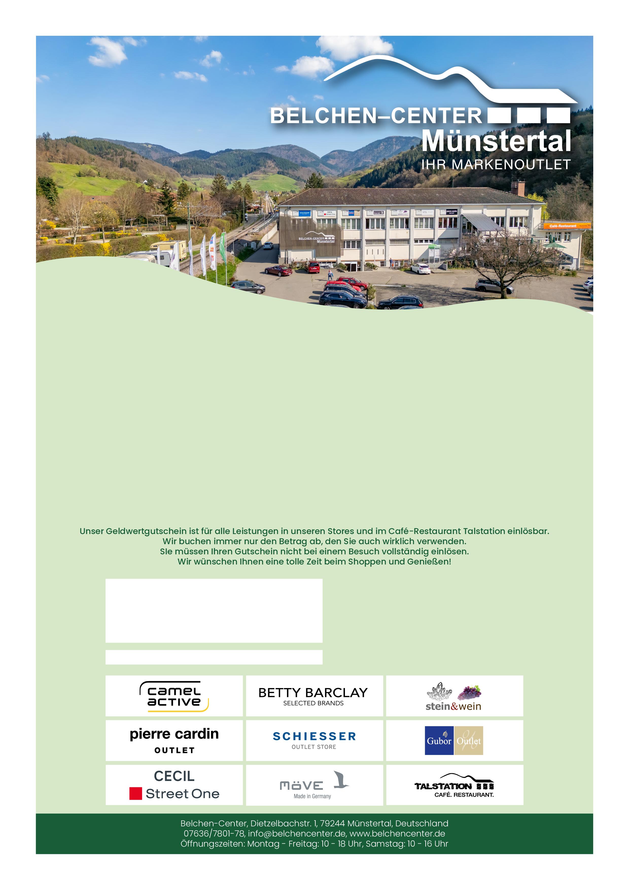 Unser Geldwertgutschein ist in allen Stores im Belchen-Center und in der Talstation einlösbar.