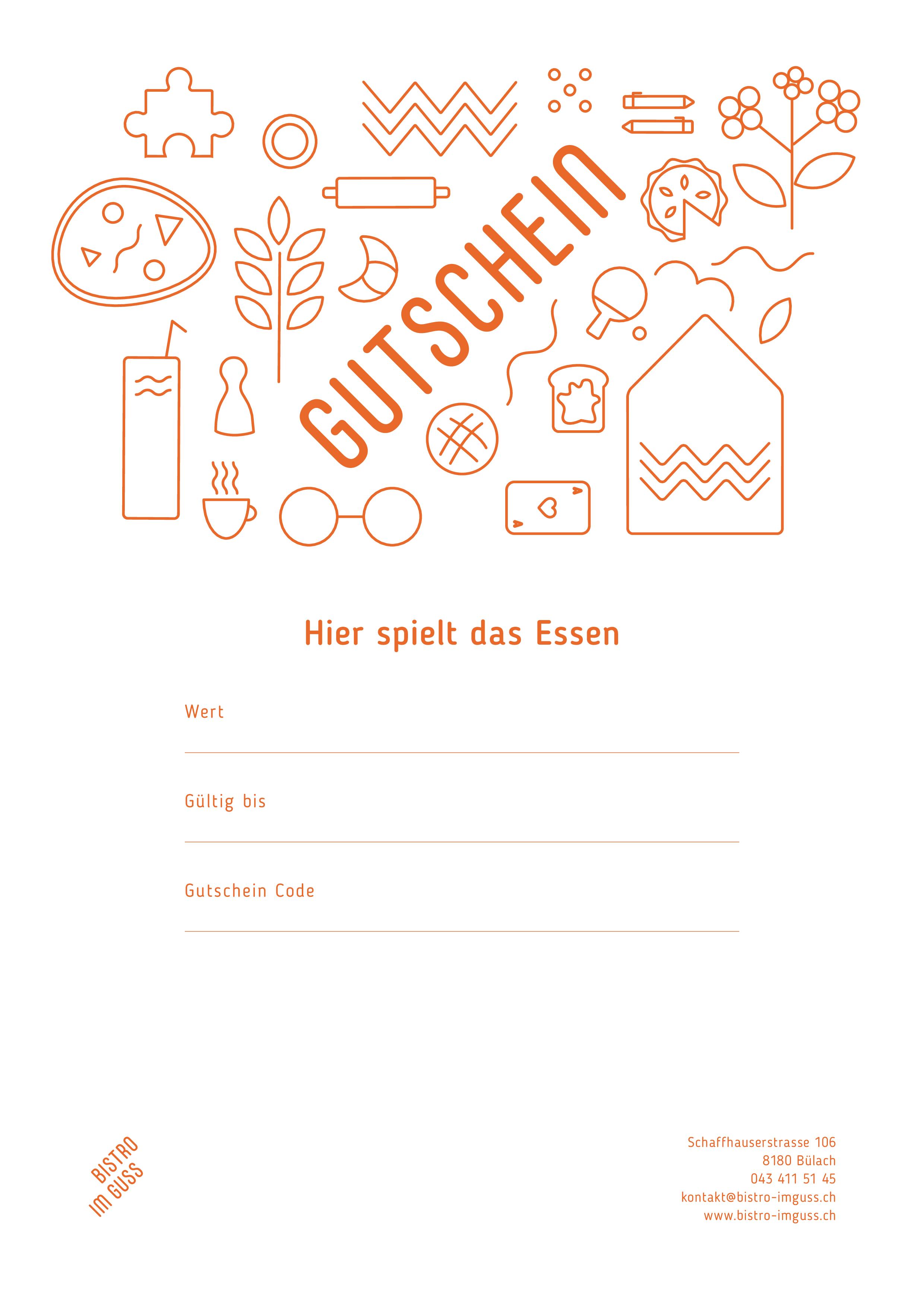 Unser Gutschein ist für alle Leistungen in unserem Bistro einlösbar und kann bis zum eingesetzten Betrag mehrmals genutzt werden.