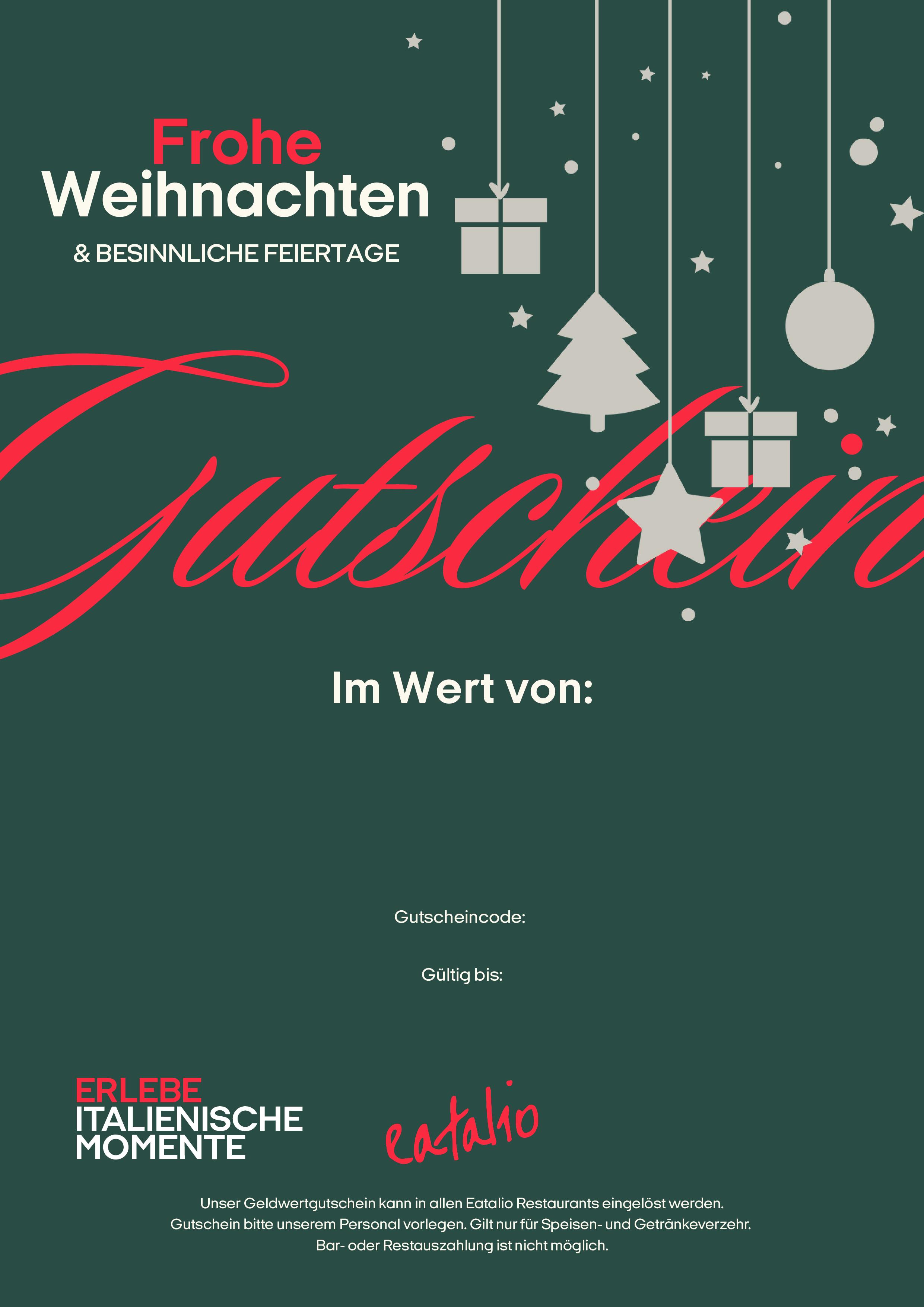 Unser Geldwertgutschein kann in allen Eatalio Restaurants eingelöst werden.