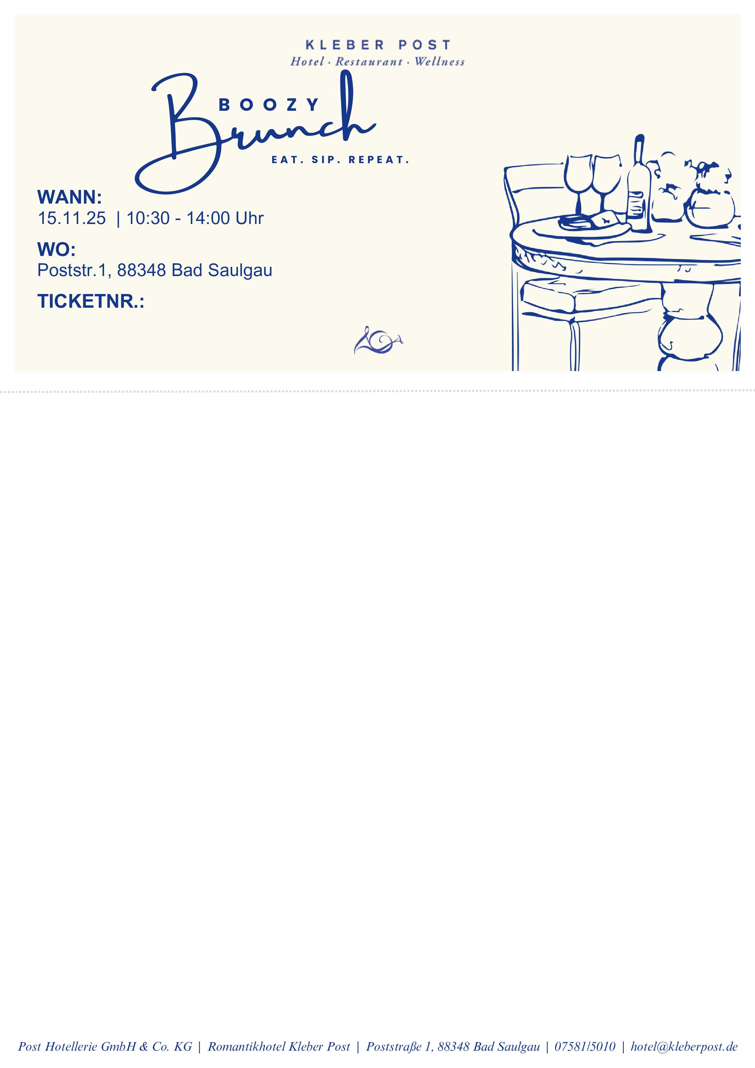 Beim Boozy Brunch servieren wir abwechslungsreiche Brunch-Gerichte und kreative Drinks in entspannter Atmosphäre. Die Live-Band „Die Drahtzieher“ sorgt mit ihrem Sound für das passende Weekend-Feeling – ein Genuss für alle Sinne.