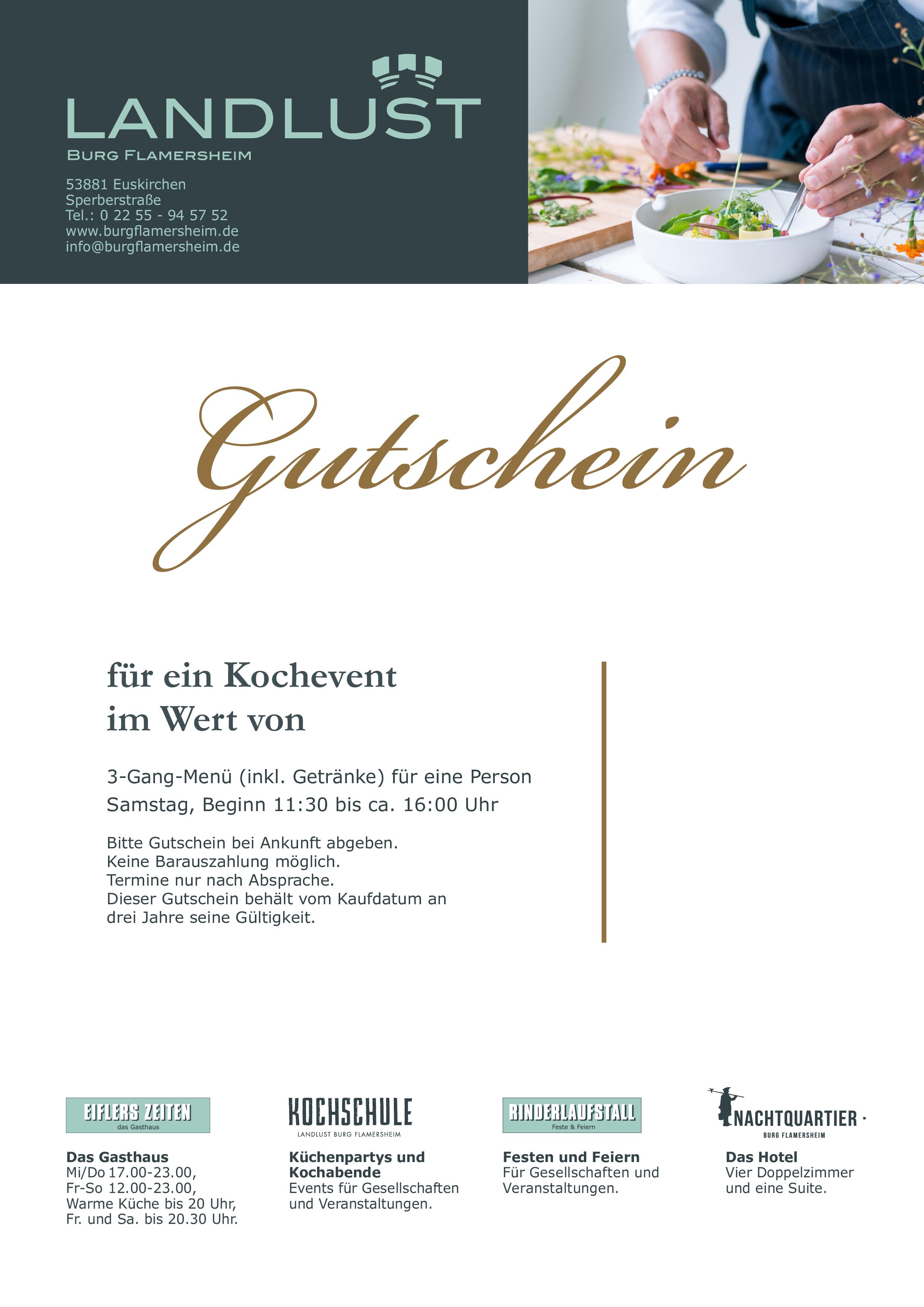 3-Gang Kochkurs inkl. begleitender Getränke.