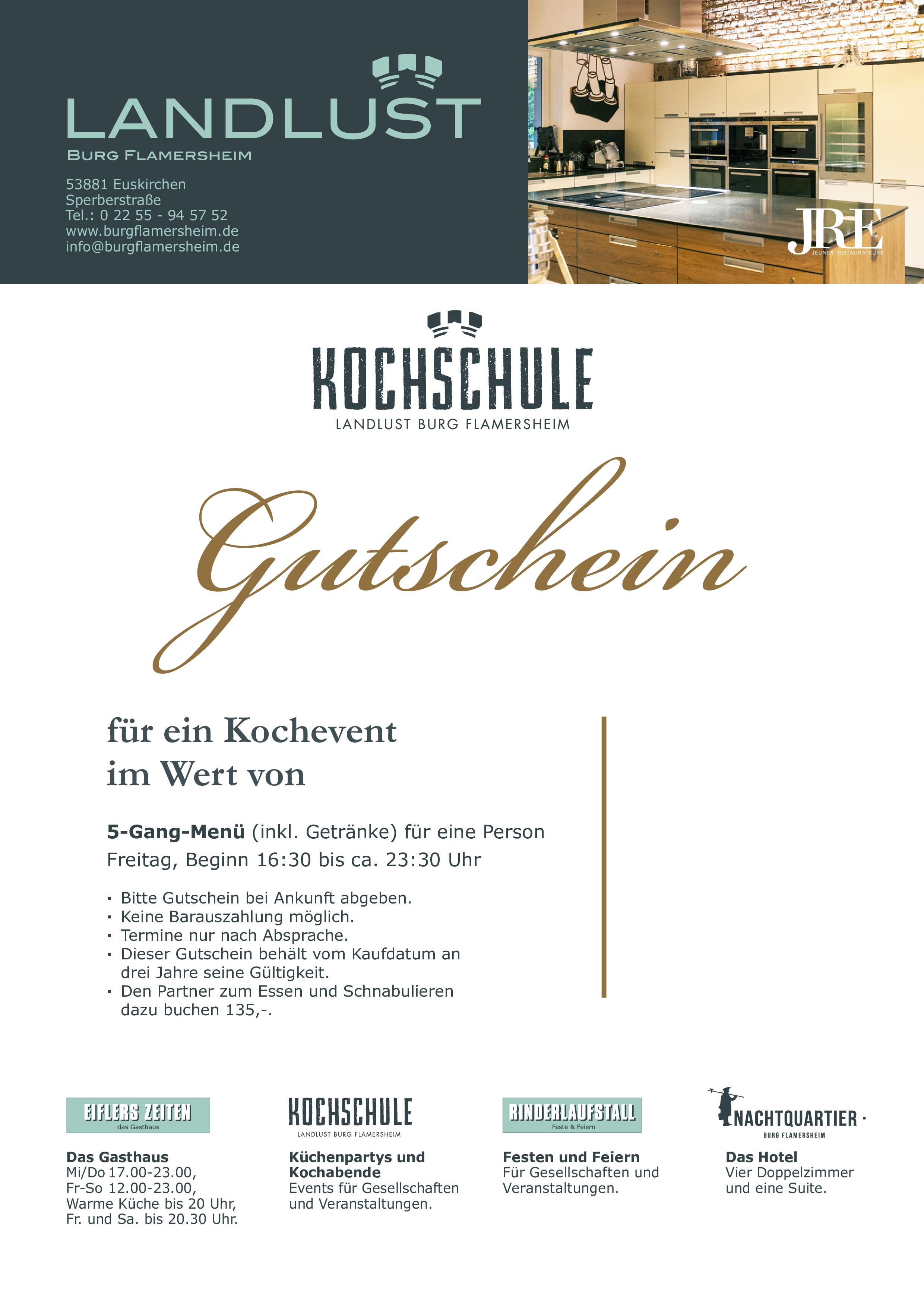 5 Gang Kochkurs Freitags inkl. begleitender Getränke