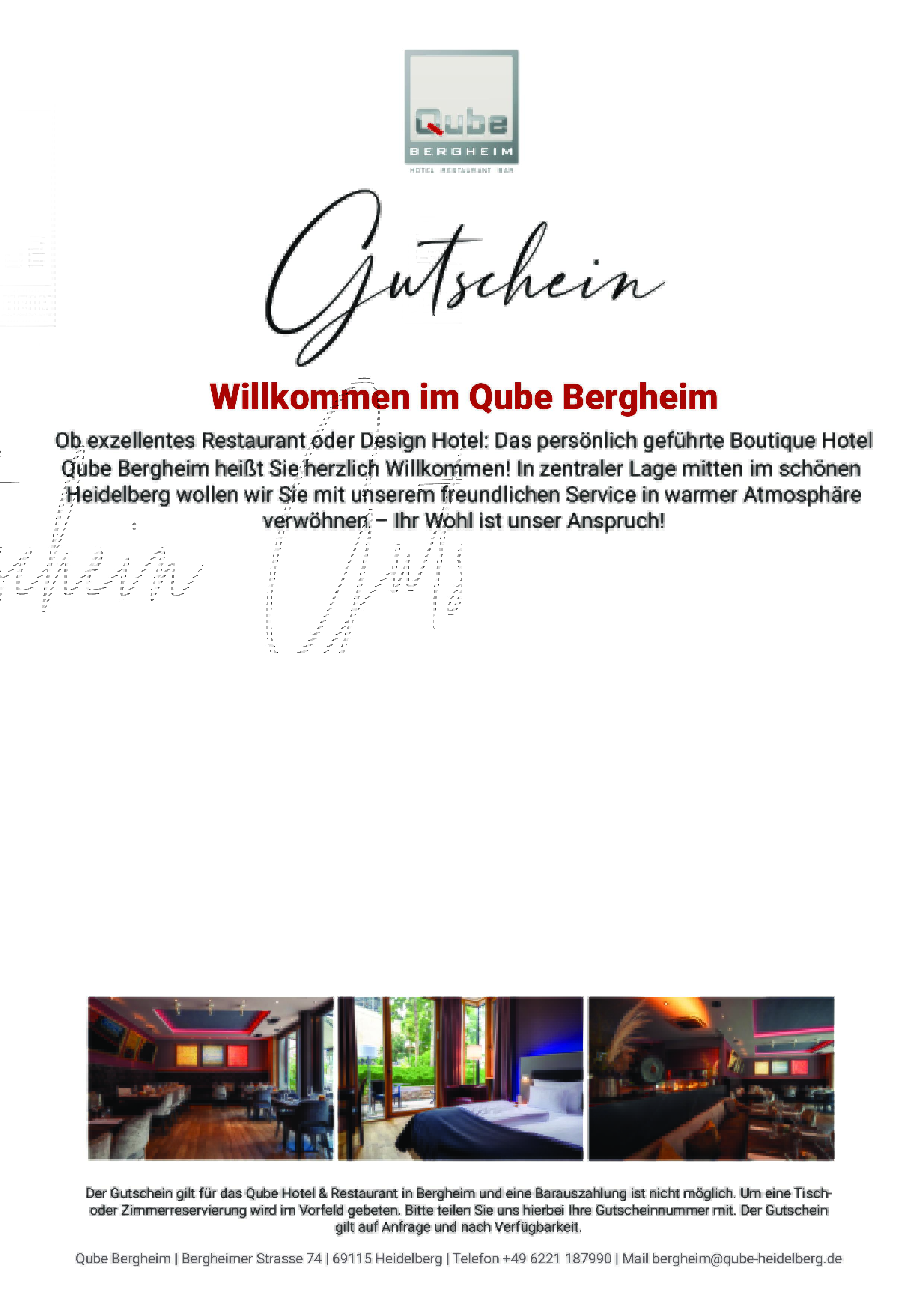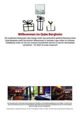 Verschenken Sie unvergessliche Momente – mit unseren Qube-Wertgutscheinen. Ob gemütliches Abendessen im Restaurant, ein entspanntes Frühstücken mit Freunden oder ein Wochenendausflug in eine der schönsten Städte Deutschlands – unser Wertgutschein macht den perfekten Moment möglich. Sofort lieferbar mit print@home Druckfunktion, selbst gestalten mit persönlicher Widmung, flexibel einlösbar und ideal für jeden Anlass: Geburtstag, Jubiläum, Dankeschön oder einfach, um gemeinsam Zeit zu genießen. Mit einem Qube-Wertgutschein verschenken Sie immer ein Erlebnis – moderne Hotelzimmer, leckeres Essen, gemütliches Ambiente und unvergessliche Gespräche. Jetzt verschenken und Freude schenken!