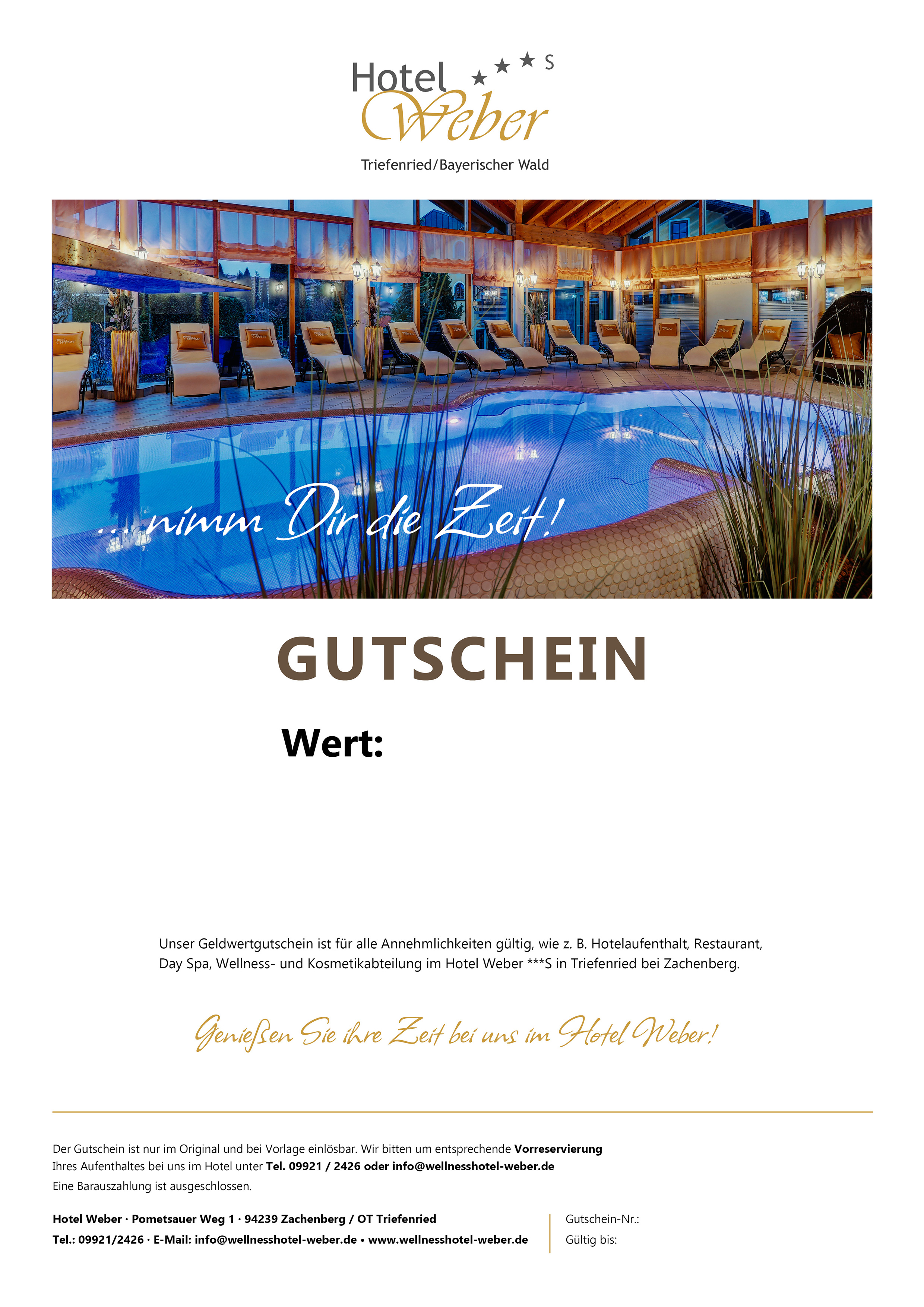 Genießen Sie ihre Zeit bei uns im Hotel Weber!Der Gutschein ist nur im Original und bei Vorlage einlösbar.