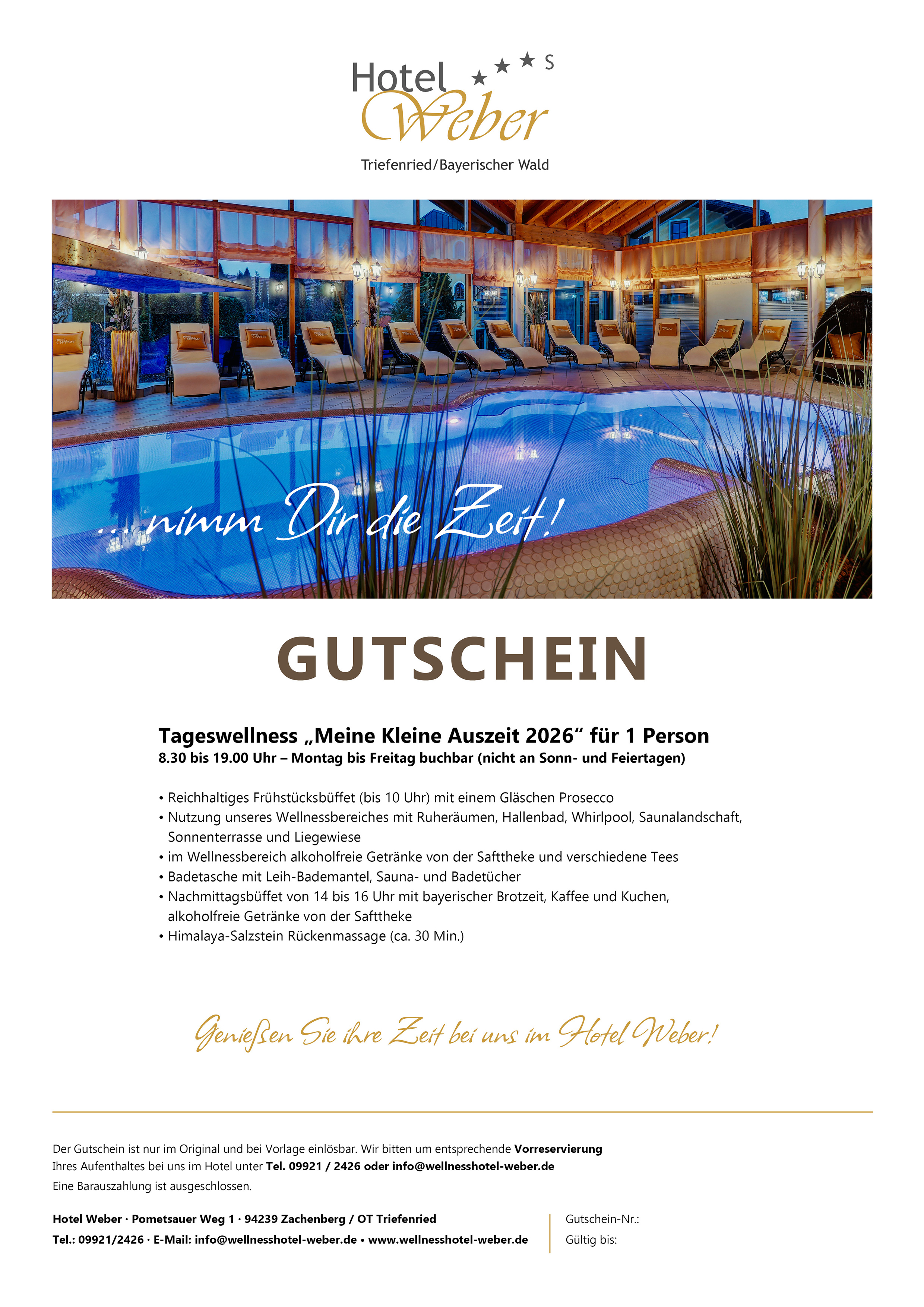 „Meine kleine Auszeit 2026" für 1 Person (Montag bis Freitag buchbar)