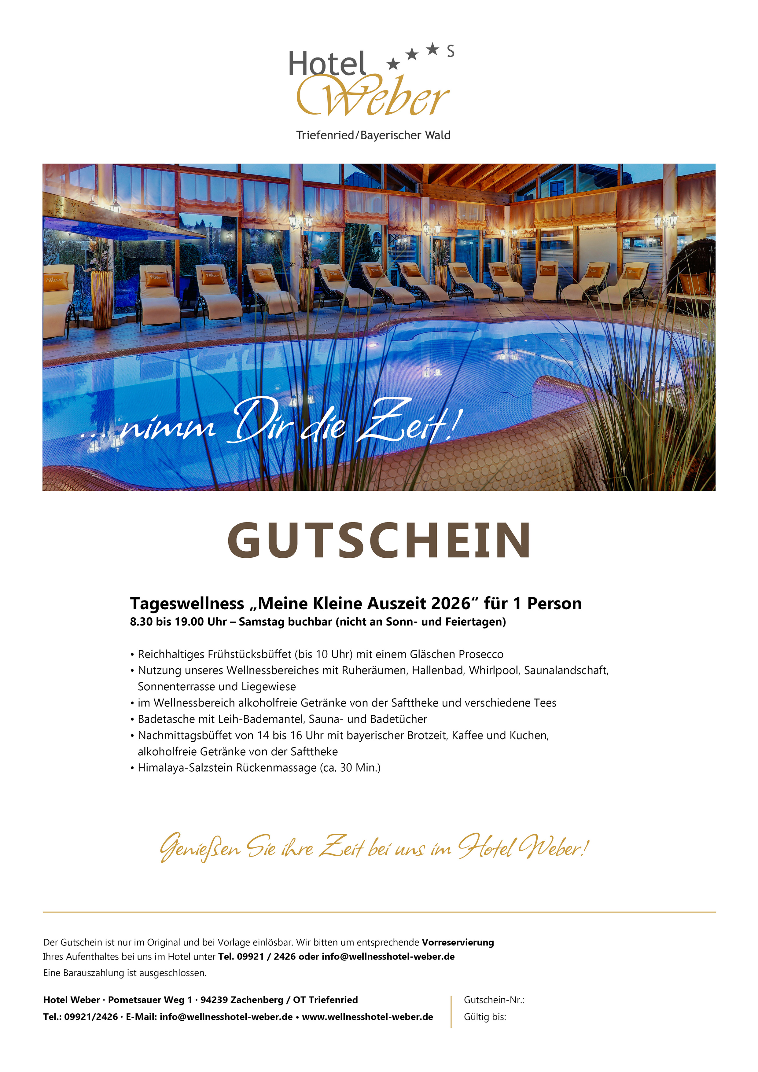 „Meine kleine Auszeit 2026" für 1 Person (Samstag buchbar)